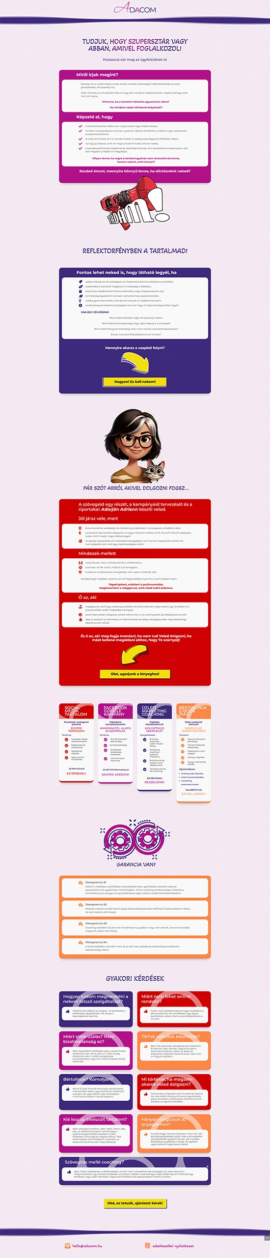 ⇒ szolgáltatás vagy termék megvásárlására, jelentkezésre ösztönző, rendszeres vagy szezonális időszakra szóló egyoldalas, CTA-kkal megtűzdelt, menürendszerrel nem rendelkező webhelyek — mint: rendezvény jegy eladás, könyv eladás, kampány kiszolgálás, pozícióra jelentkezés