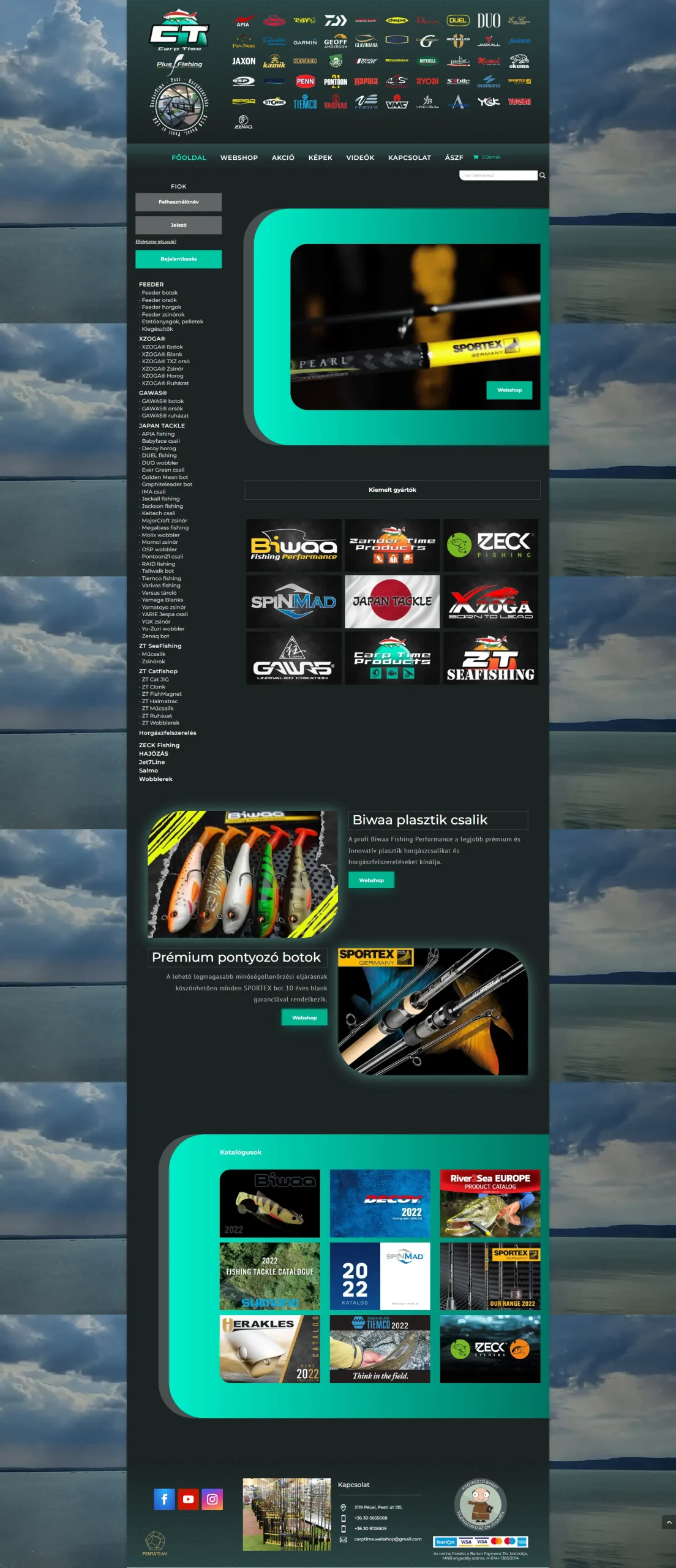 ⇒ precízen felépített vásárlási folyamattal (a terméktől – a kosárba helyezésen – fizetési és szállítási módokon keresztül – a vásárlásig – az ezt követő pontos interakciókig), felhasználói fiókokkal, kedvezményrendszerekkel — mint: horgászat, építőipar, egészség, kozmetika, kézműves